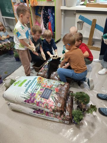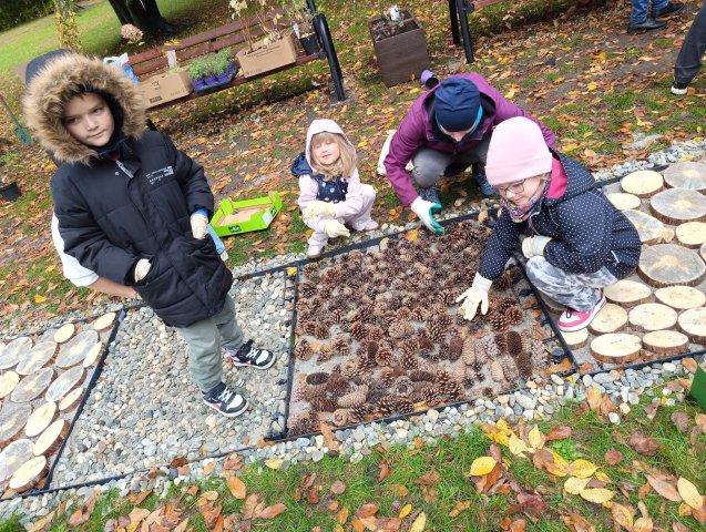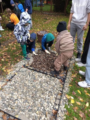 7 października 2025 r. dzieci z oddziałów przedszkolnych brały udział w realizacji programu grantowego "Nasze Środowisko" Fundacja ING Dzieciom. Z wielkim zaangażowaniem przystąpiły do sadzenia roślinek w donicach, które ozdabiać będą hol przedszkolny oraz tworzyły sensoryczną ścieżkę z wykorzystaniem naturalnych materiałów (piasku, szyszek, kamieni i drewnianych plastrów). Celem projektu było kształtowanie postaw proekologicznych, rozwijanie wrażliwości oraz nauka odpowiedzialności za środowisko naturalne. W ramach programu zostaliśmy obdarowani wspaniałymi akcesoriami do tworzenia ścieżek sensorycznych w sali przedszkolnej oraz innymi cennymi pomocami dydaktycznymi. Dzięki wsparciu Fundacji ING Dzieciom udało się stworzyć zielony zakątek, który będzie nie tylko ozdobą naszego przedszkola, ale także miejscem do nauki i odpoczynku na świeżym powietrzu.
